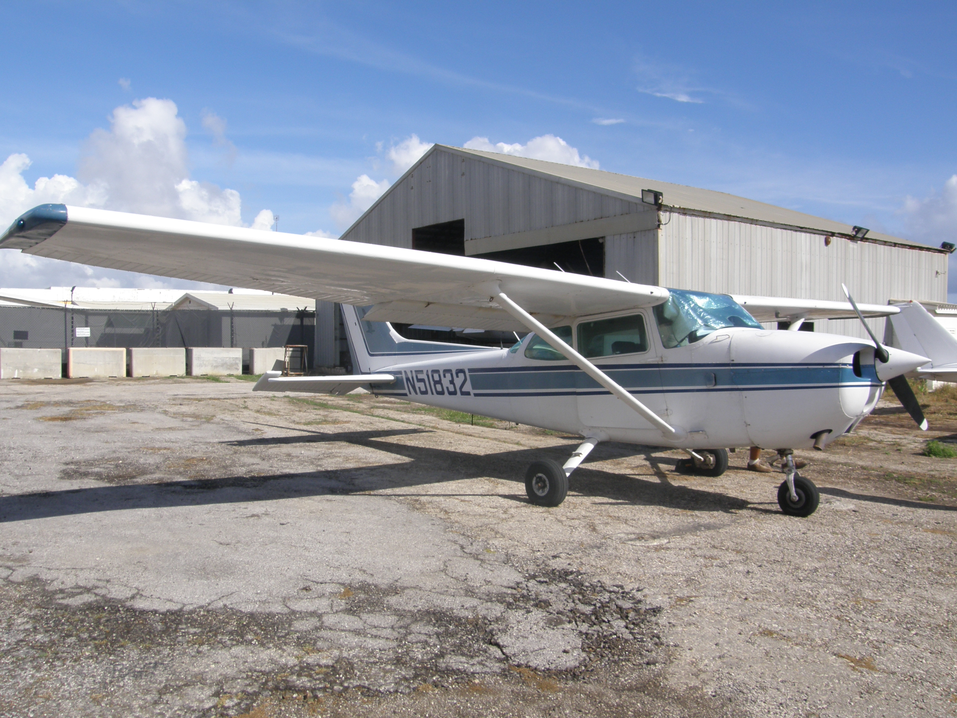 Het vliegtuig was al netjes uit de hangar getrokken. Het was een N-vliegtuig, geregistreerd in de VS. Veel vliegtuigen in het Caribisch gebied hebben een N-callsign. Ik beschik over een FAA-gelijkstelling en deze was nog geldig, dus geen probleem om als pilot-in-command dit vliegtuig te besturen.